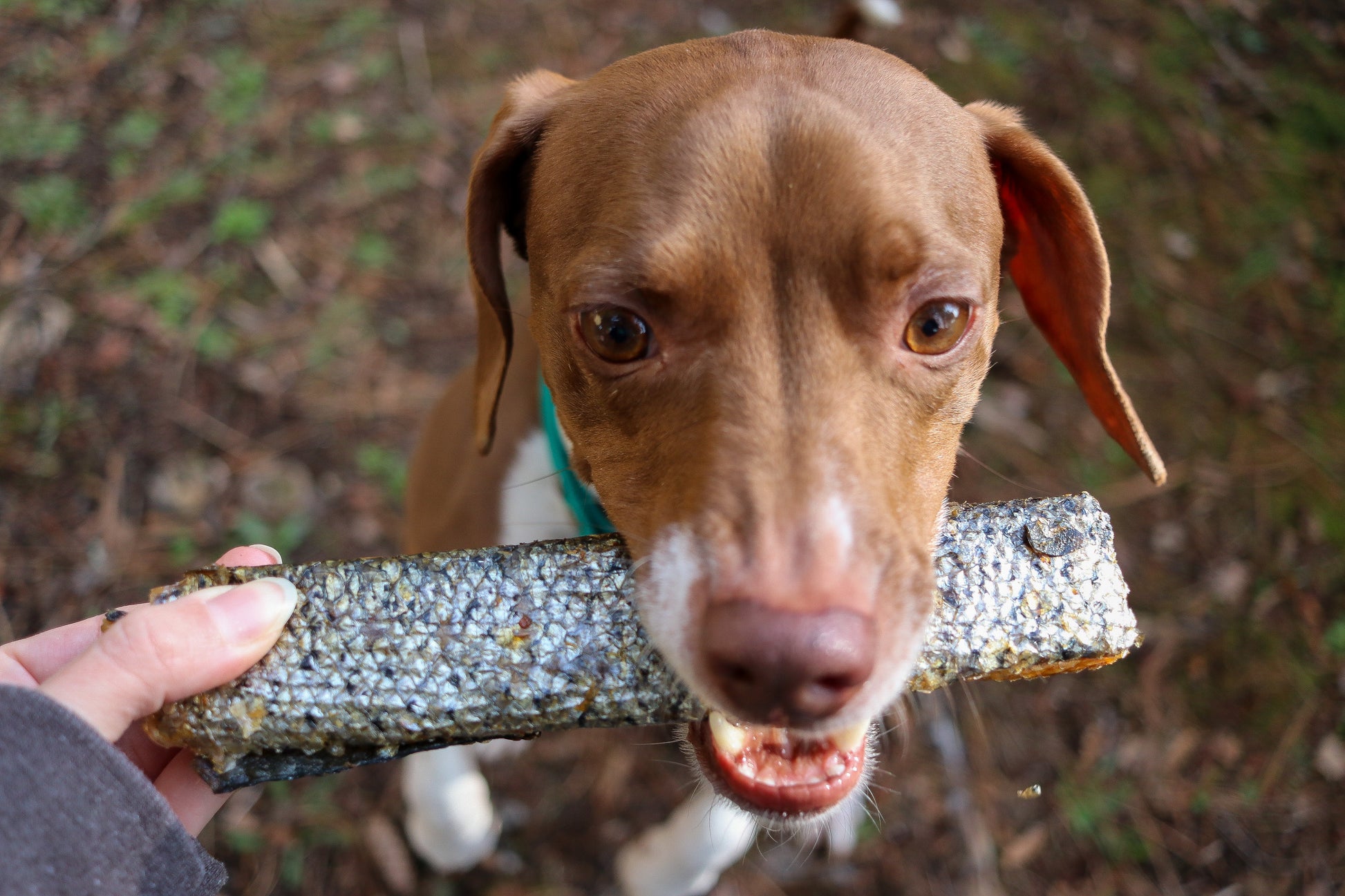 Our salmon skins are a quicker chew for your dog or cat. They are a crunchy treat that lasts up to five minutes, depending on the pet chewing.